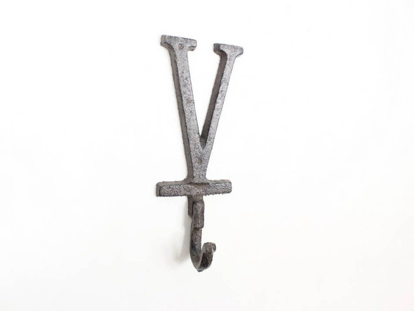 Handcrafted Cast Iron Letter V Alphabet Wall Hook 6" from Hampton Creations