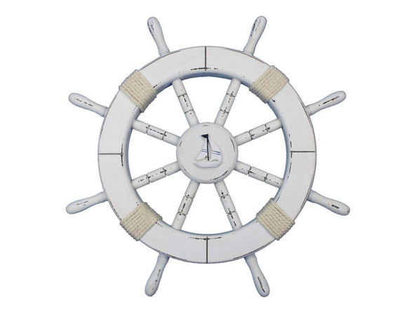 Handcrafted Rustic White Decorative Ship Wheel with Sailboat 18" from Hampton Creations