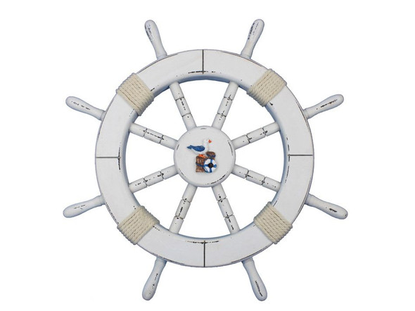 Handcrafted Rustic White Decorative Ship Wheel with Seagull and Lifering 18" from Hampton Creations