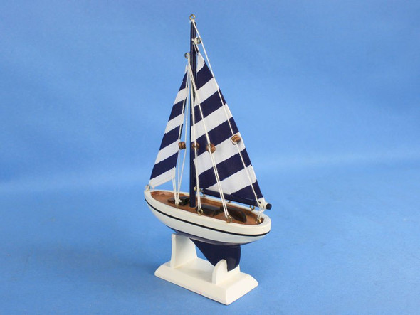 Handcrafted Wooden Blue Striped Pacific Sailer Model Sailboat Decoration 9" from Hampton Creations