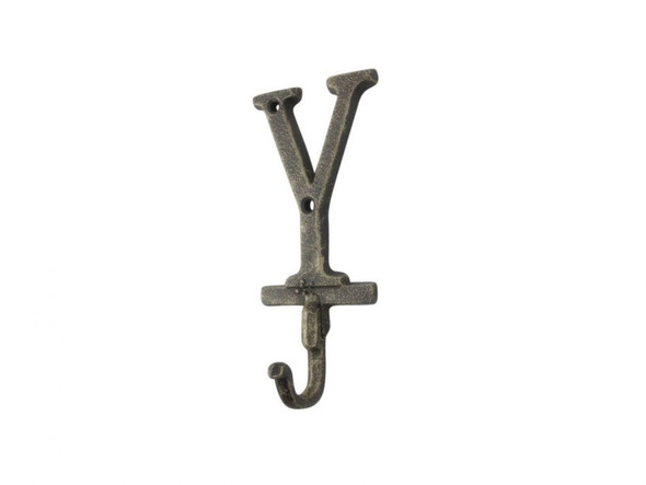 Handcrafted Rustic Gold Cast Iron Letter Y Alphabet Wall Hook 6" from Hampton Creations