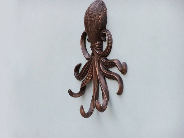 Handcrafted Antique Copper Wall Mounted Octopus Hooks 7" from Hampton Creations