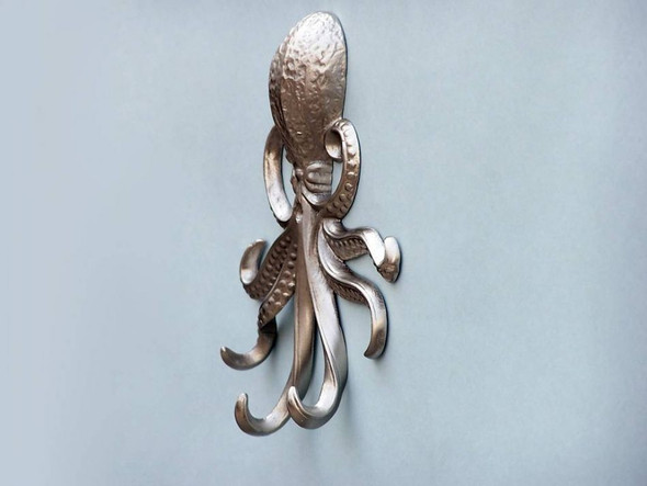 Handcrafted Silver Finish Wall Mounted Octopus Hooks 7" from Hampton Creations