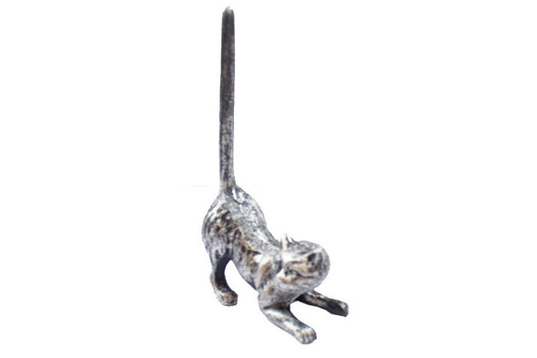 Handcrafted Rustic Silver Cast Iron Cat Paper Towel Holder 10" from Hampton Creations