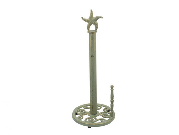 Handcrafted Rustic Dark Blue Whitewashed Cast Iron Starfish Paper Towel Holder 15" from Hampton Creations