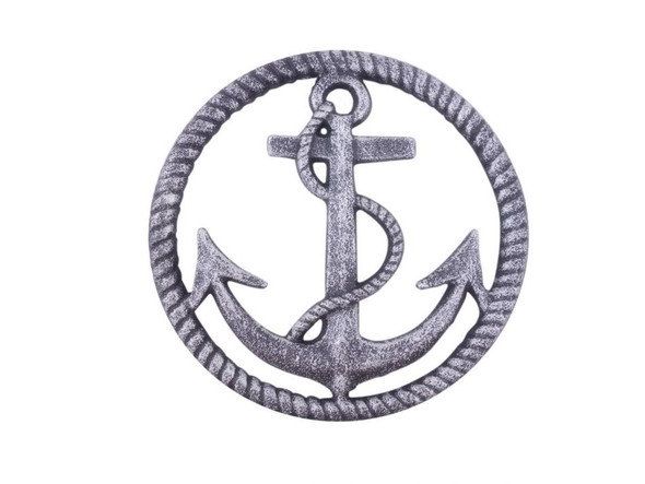Handcrafted Rustic Silver Cast Iron Anchor and Rope Nautical Kitchen Trivet 7" from Hampton Creations